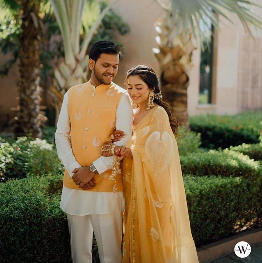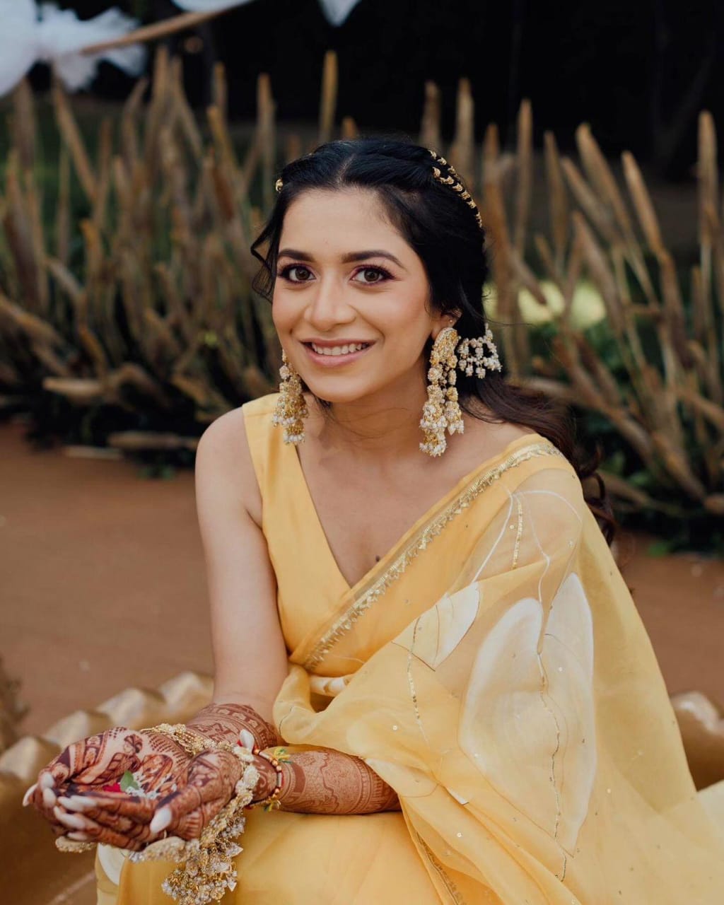 Flamingo's on Haldi Yellow organza saree with Sequins & Border
